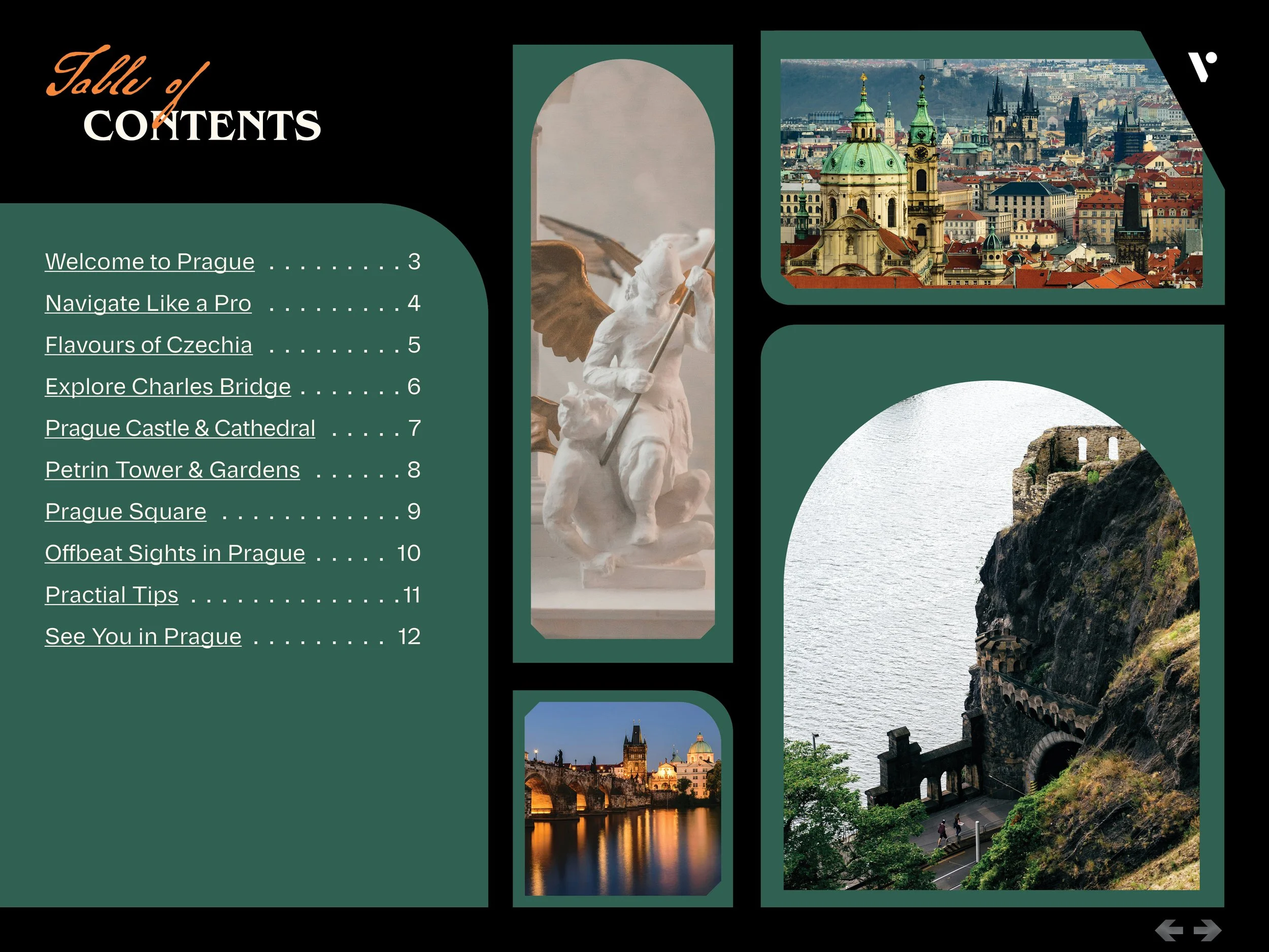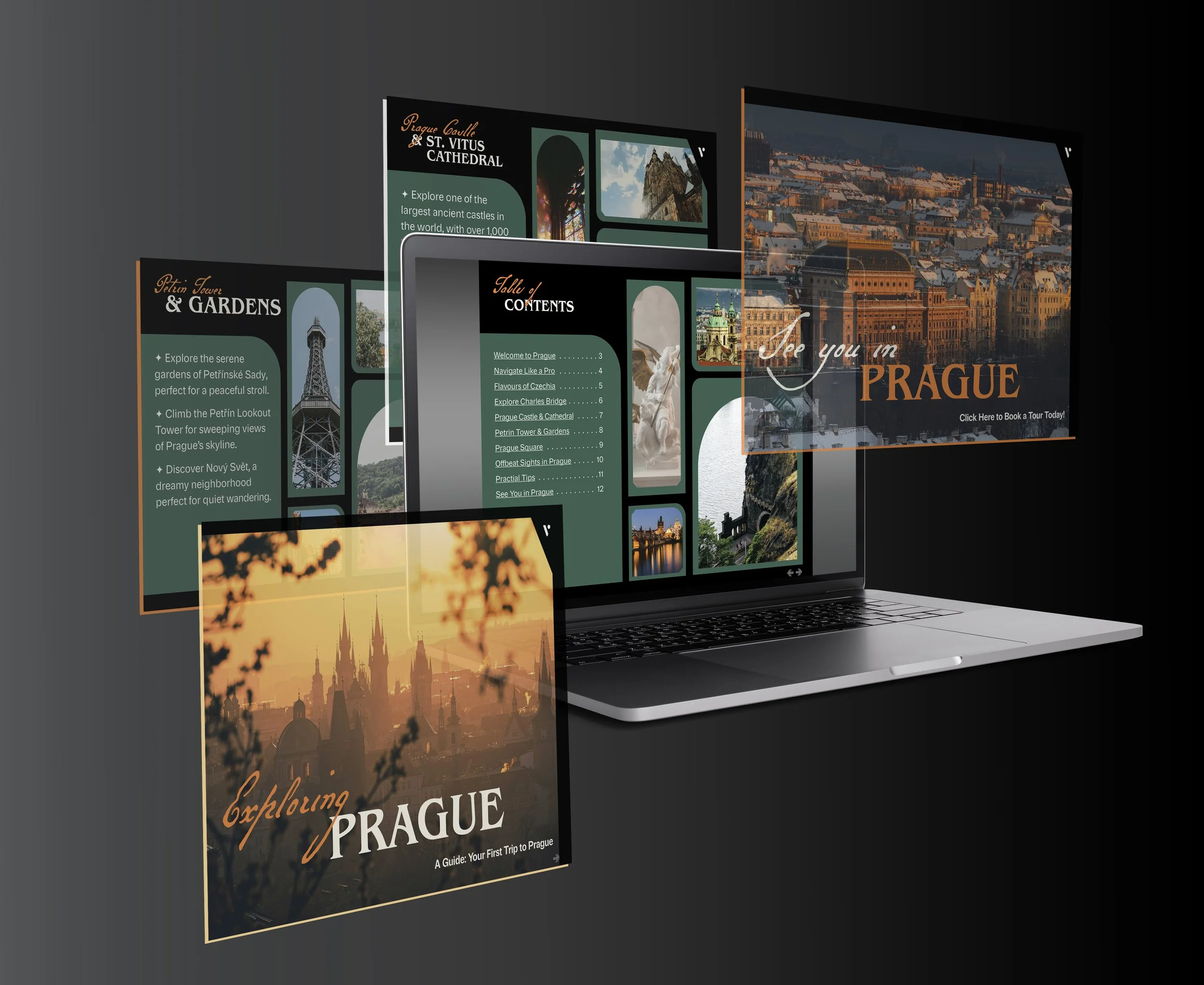 Exploring Prague is a digital guide created to help travelers navigate one of Europe’s most beautiful cities with ease and inspiration. Designed for clarity and visual impact, this guide combines thoughtful tips, cultural highlights, and stunning imagery into a layout inspired by Prague’s historic architecture. Rounded frames, soft grid structures, and a refined palette reflect the city’s charm while keeping the content accessible and engaging.