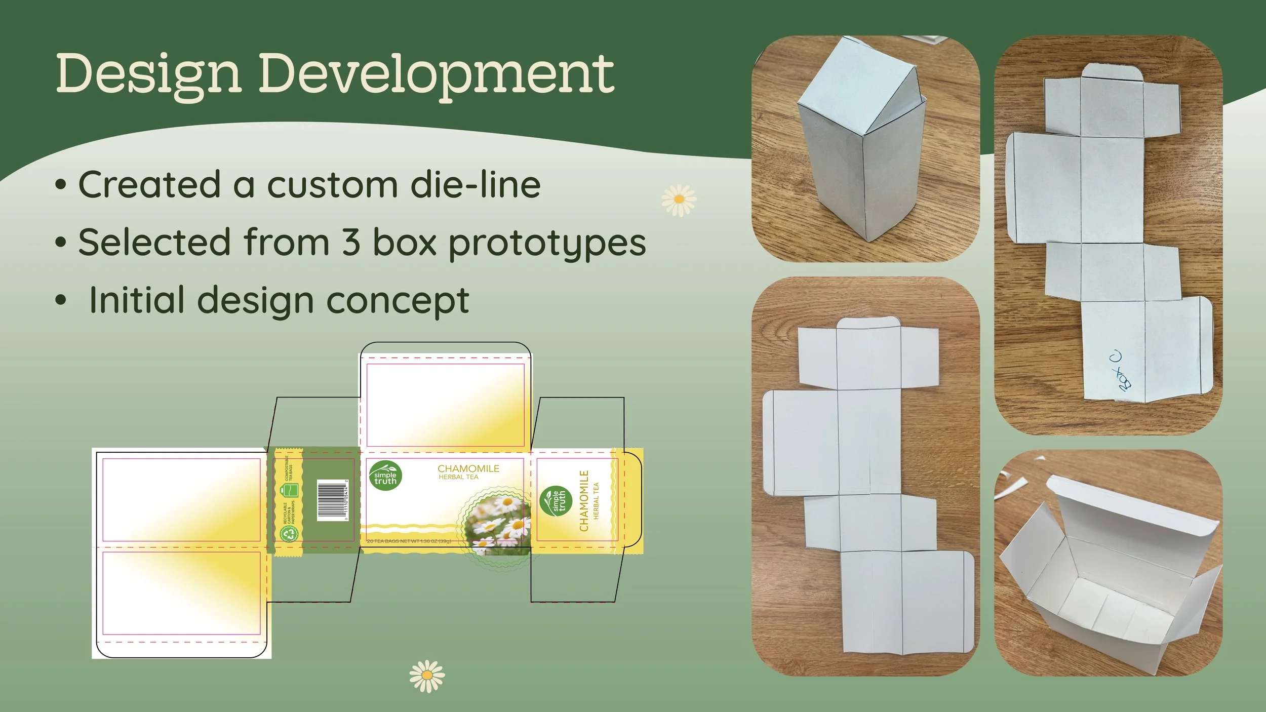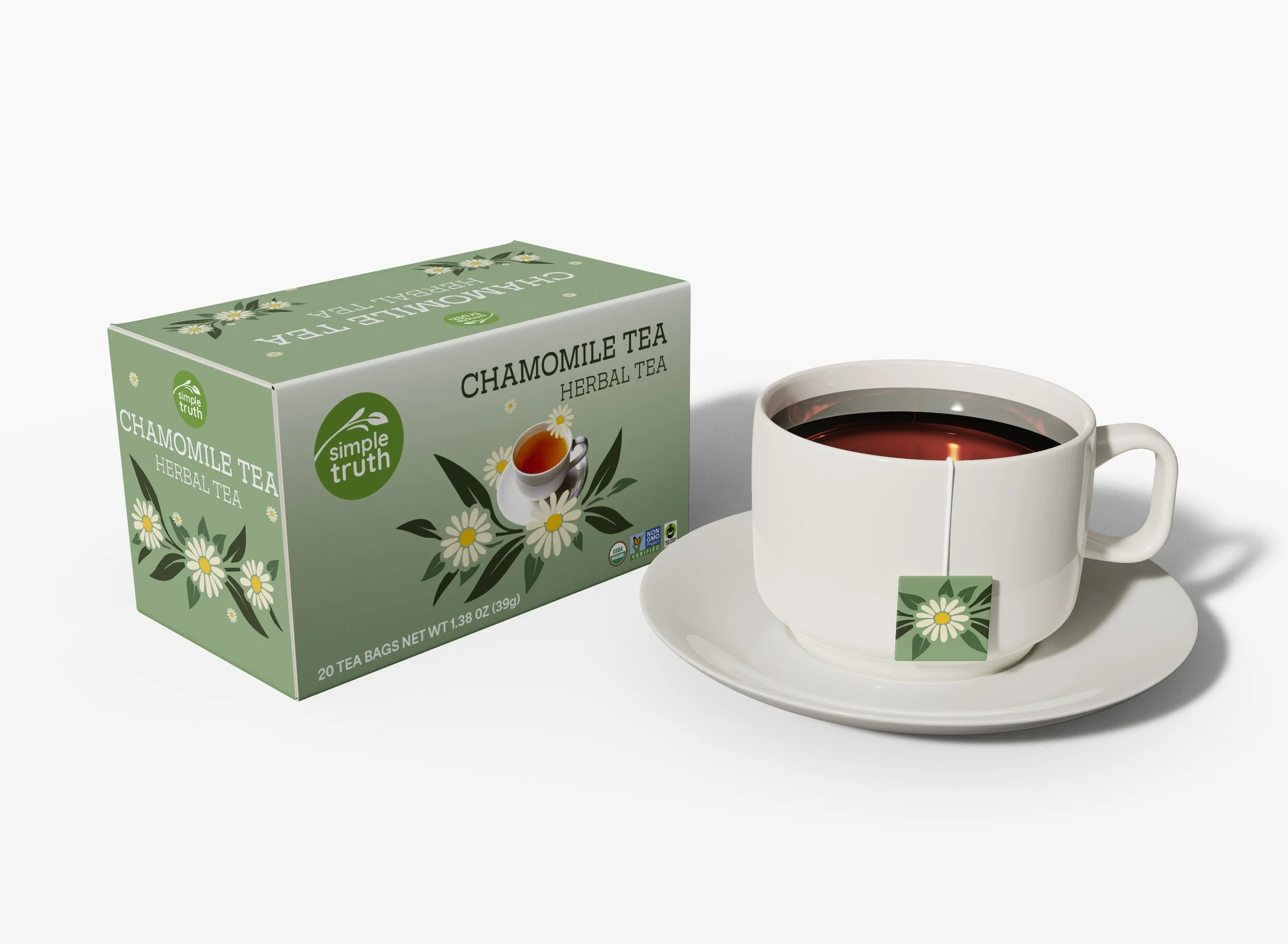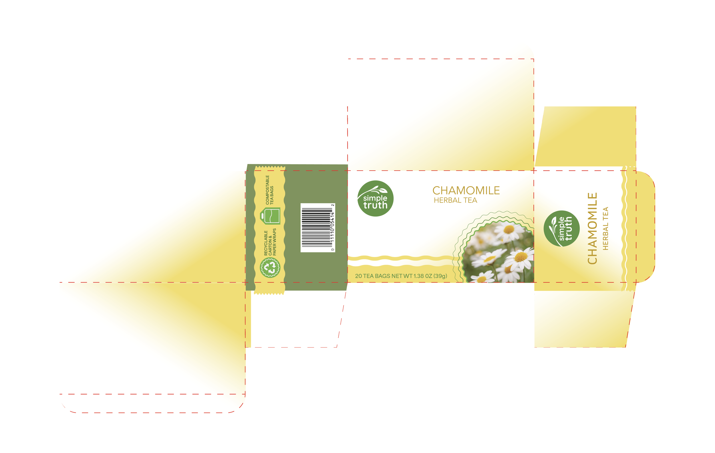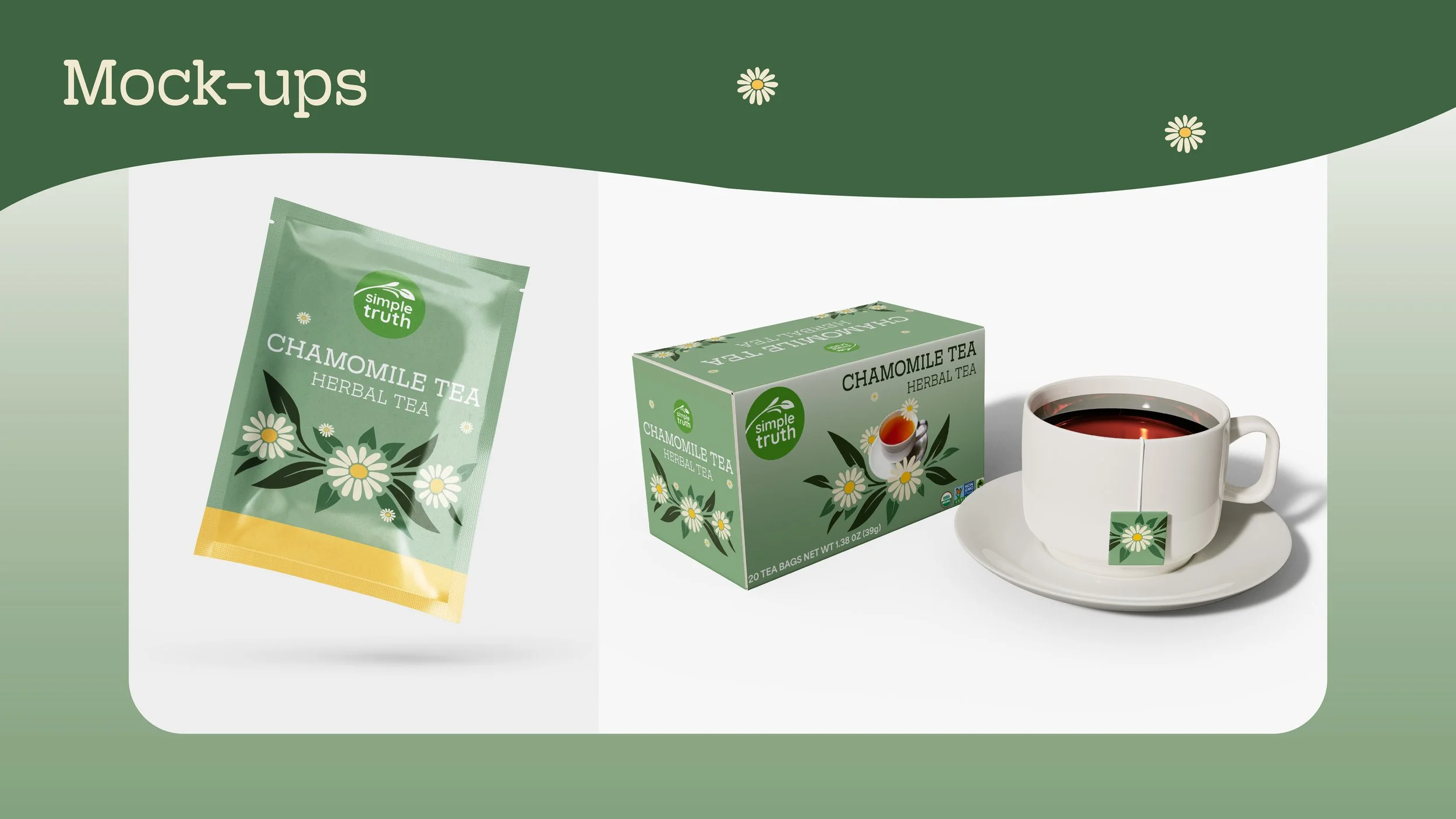 I redesigned the Simple Truth chamomile tea packaging to improve sustainability, functionality, and shelf appeal while modernizing the brand’s visual identity.